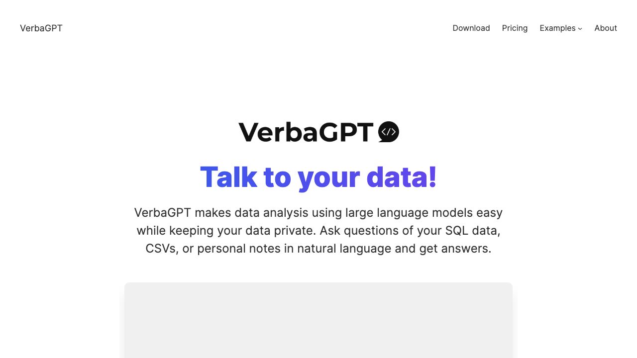 VerbaGPT is a tool designed to make data analytics using large language models (LLMs) easy and private. It allows users to ask questions of their SQL data, CSVs, or personal notes in natural language and receive answers. VerbaGPT runs locally, ensuring data privacy by not giving the LLM direct access to the data itself, only the schema and explicitly provided information.