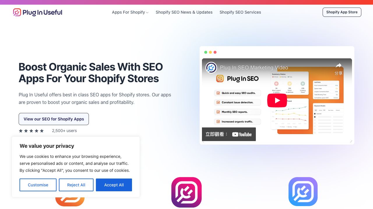 Plug In Useful offers SEO apps for Shopify stores designed to boost organic sales and profitability. Their apps provide tools to improve traffic, optimize content, and conduct in-depth SEO audits without the need for an SEO agency. Features include fixing broken links, step-by-step guides, and automated SEO improvements for product and collection descriptions.