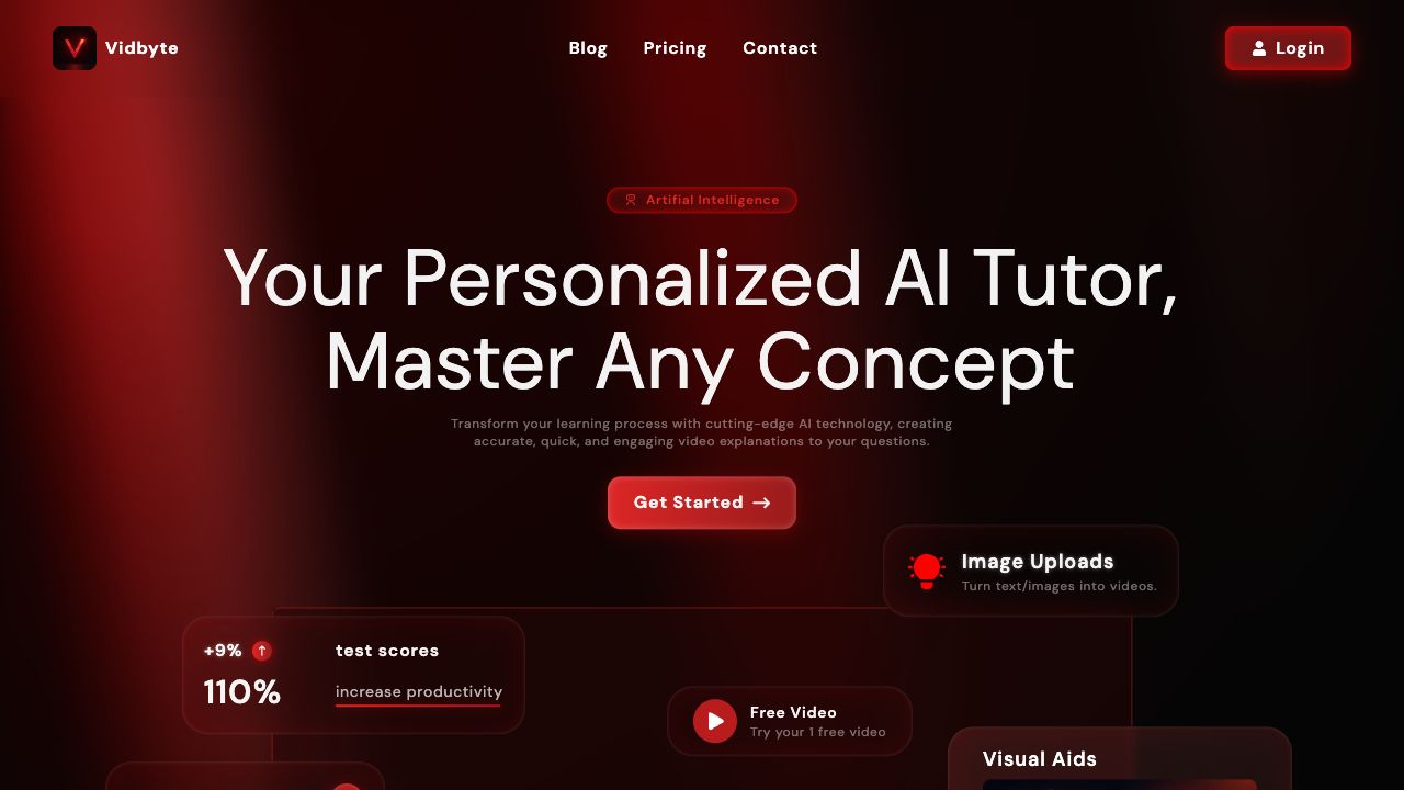 Vidbyte uses AI to create short, 1-2 minute video explanations for questions or topics, covering subjects from grade school math to theoretical physics. It supports all subjects and levels, providing personalized video content to help users ace exams and save study time. Vidbyte simplifies complex topics with engaging, easy-to-understand videos, including examples and visual aids.