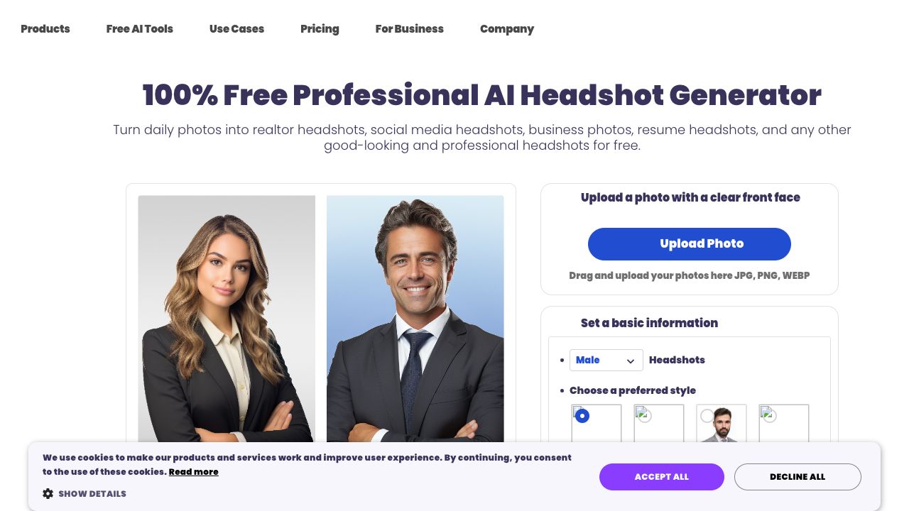 VIDNOZ AI HEADSHOT GENERATOR Features