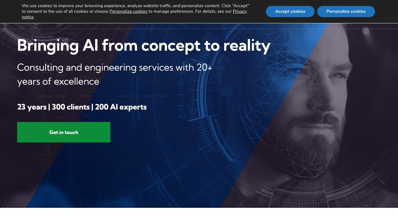 Visage Technologies specializes in AI/ML solutions optimized for performance and compliance, leveraging over 20 years of consultancy and engineering experience. They offer custom development services and a range of products including visage|SDK™, FaceTrack, FaceAnalysis, FaceRecognition, and makeup|SDK. Their expertise spans various use cases such as driver monitoring, virtual makeup, face filtering, and eyewear try-on. They build AI-driven products for leading companies, focusing on edge AI solutions optimized for high accuracy and low latency, providing full support from development to deployment.
