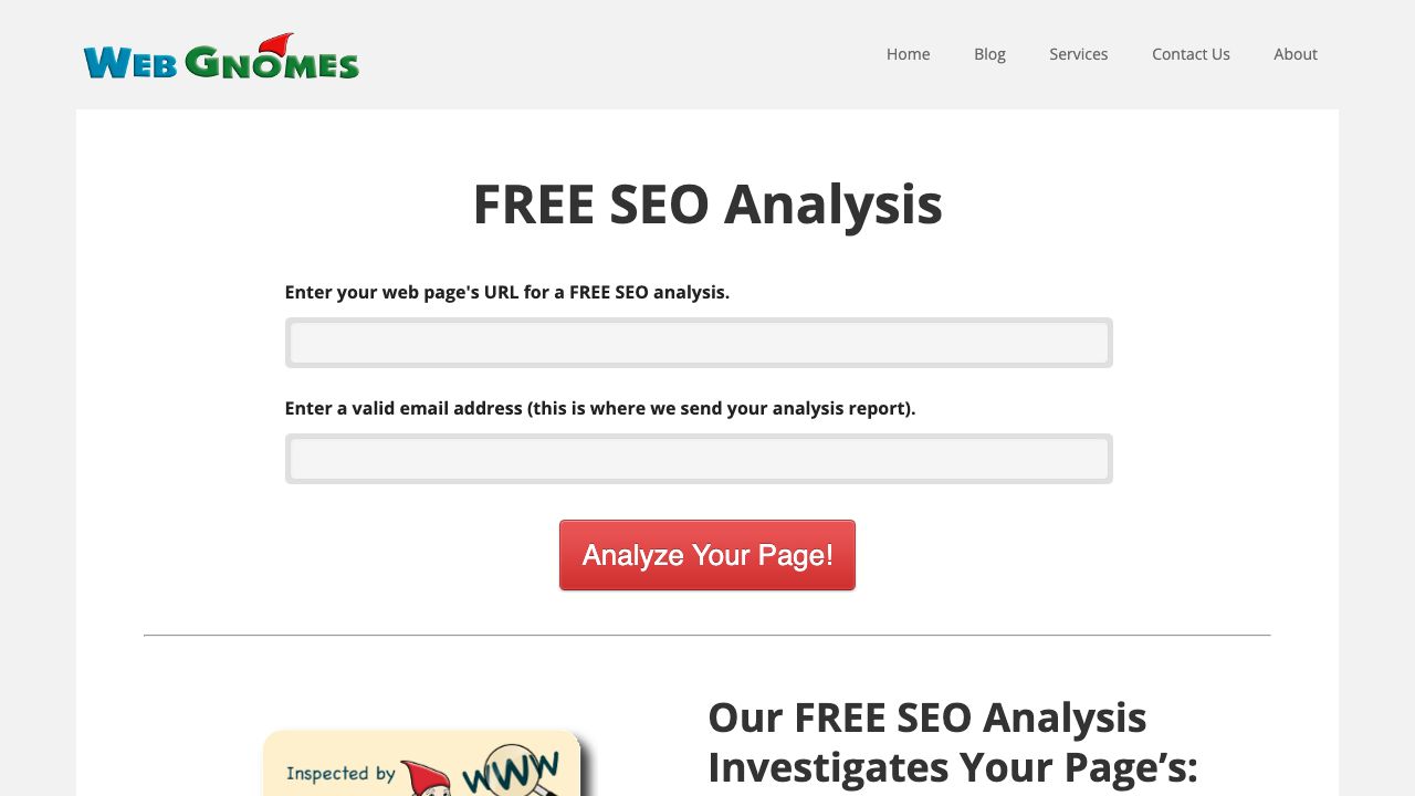 Do you want your site to rank higher? Our FREE SEO analysis finds your biggest SEO problems and helps you fix them. Analyze your site, and rank higher!