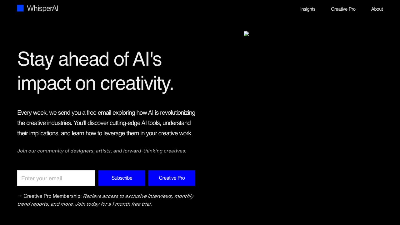 WhisperAI 是一份每周通讯和创意专业会员制,探讨人工智能如何改变创意产业。它解析了领先创意人士和公司在应对人工智能革命时使用的工具、策略和见解。还通过创意专业会员身份提供独家访谈、每月趋势报告等内容。