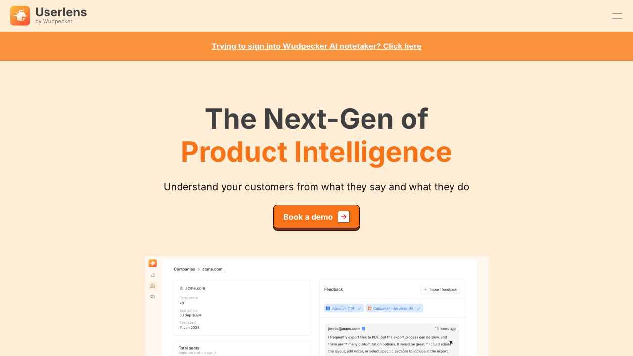 Userlens by Wudpecker is a next-gen product intelligence platform designed for customer success. It combines product analytics and customer feedback to provide a side-by-side view of customer behavior and voice. It helps B2B SaaS companies understand their customers by extracting insights from call transcripts, support tickets, and open feedback surveys. The platform offers ready-made dashboards with industry-standard metrics and cohorts, enabling teams to be better educated and prepared when speaking to clients.