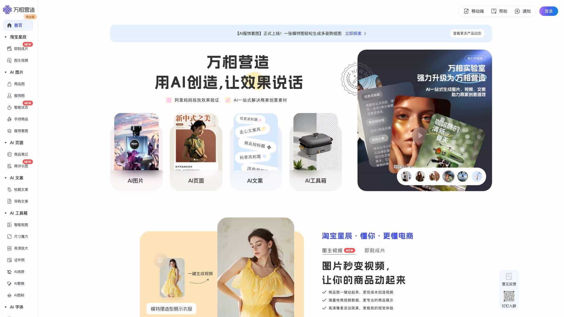 Wanxiang Yingzao (eski adıyla Wanxiang Lab), marka tanıtımı, tasarımı ve pazarlaması için akıllı, verimli ve uygun maliyetli hizmetler sağlamak üzere üretken yapay zekayı kullanan, ticari operasyonlara odaklanan, Alibaba kapsamındaki bir yapay zeka yaratıcı üretim aracıdır.