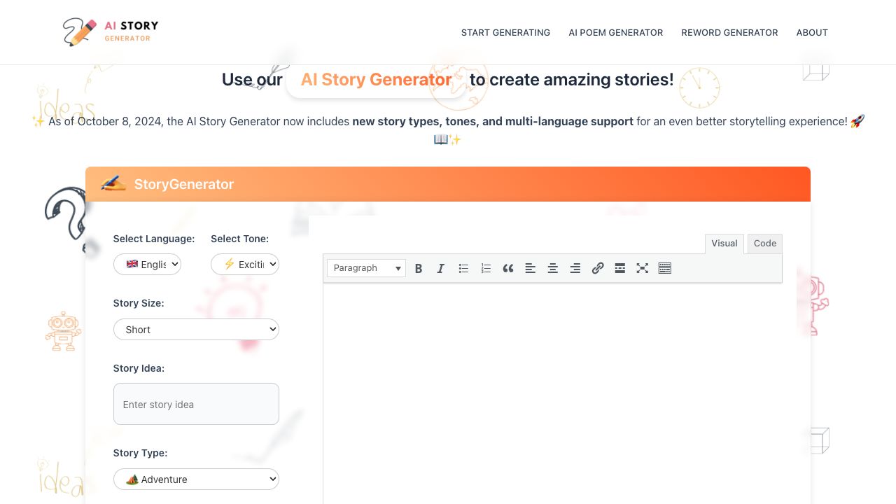 - 可定制的故事长度、语气和类型