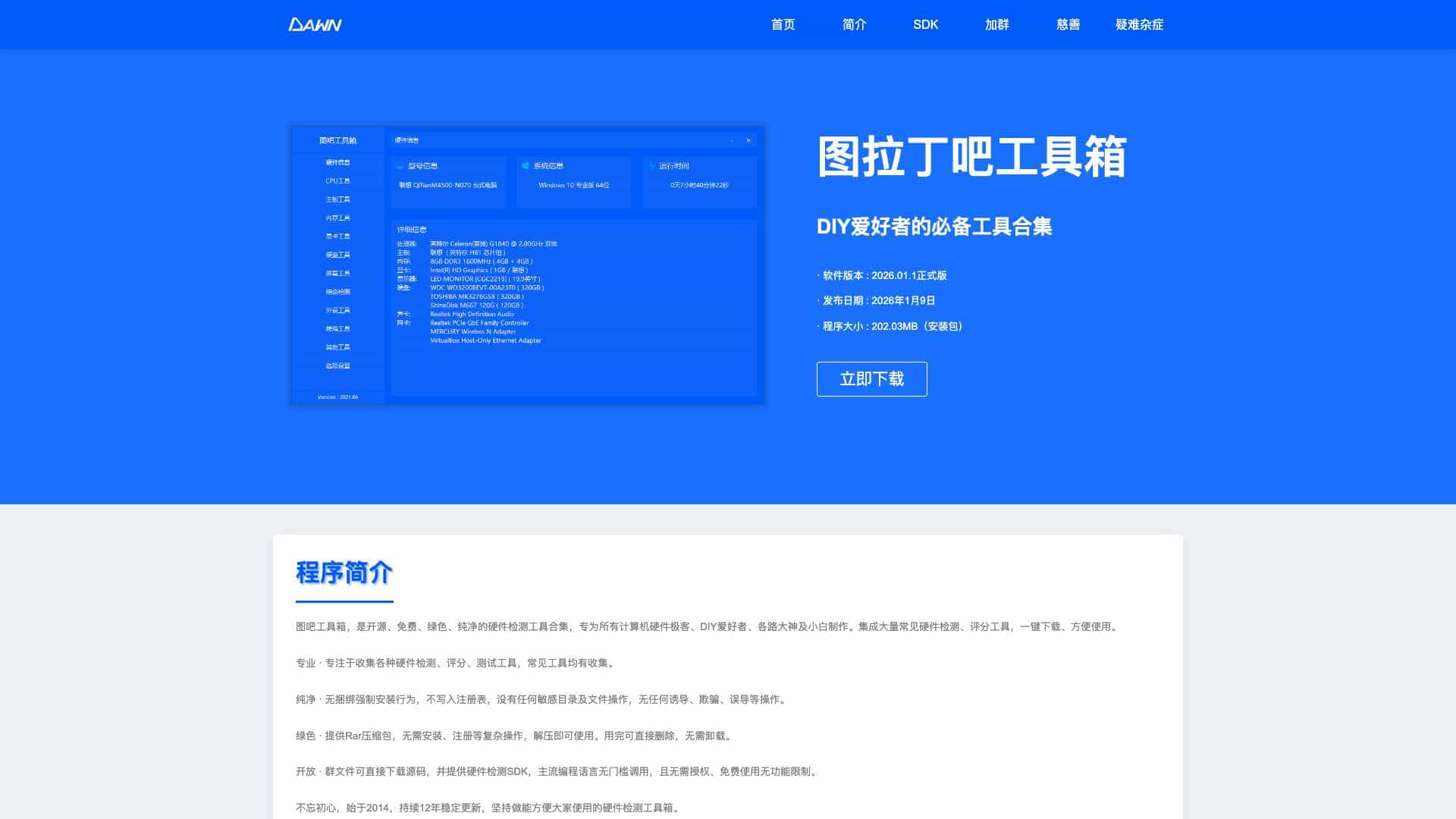 图吧工具箱是一个开源、免费、绿色的硬件检测工具合集,专为计算机硬件极客、DIY 爱好者和小白用户制作。集成大量常见硬件检测、评分工具,提供一键下载,方便使用,无需安装。
