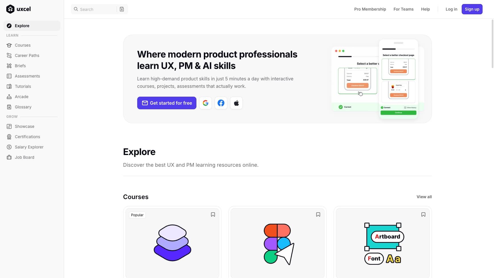 UX Cel是一个在线学习平台,提供互动课程、项目和评估,帮助产品专业人士高效掌握UX、产品管理和AI技能。