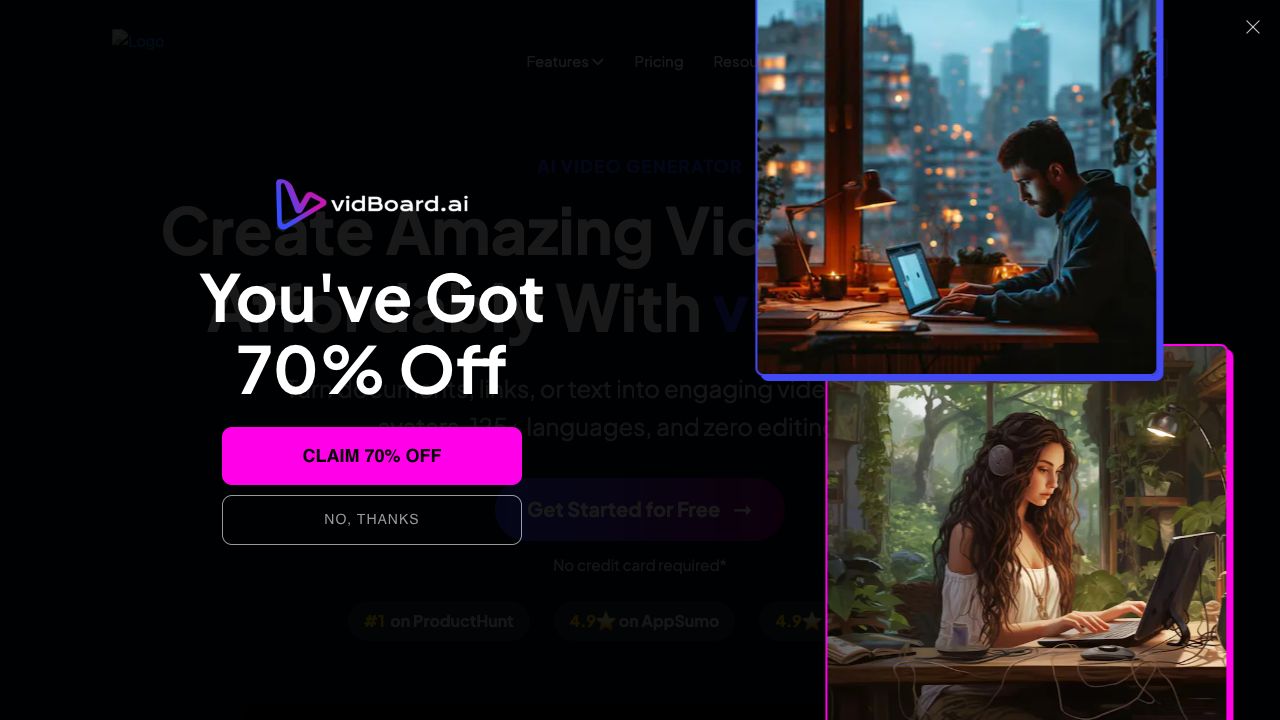 使用 vidBoard.ai 时,选择一张人类照片或使用文档,输入文本,添加多媒体元素,AI 工具会将其瞬间转化为精美的视频。您还可以使用预设计的模板,并根据需要自定义文本、图像和媒体。