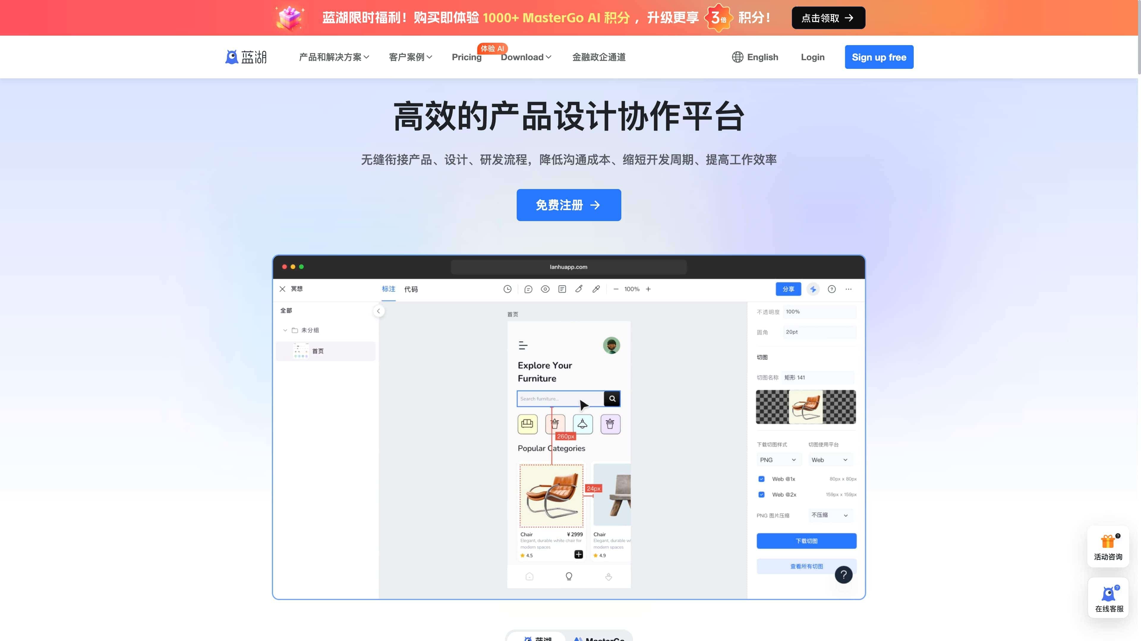 Lanhu is a digital interface production platform for the AI era, offering unified delivery, online collaboration, digital asset management, and design-to-code features. It supports tools like MasterGo, Sketch, Figma, and Photoshop, enabling seamless teamwork and secure asset handling for enterprises.
