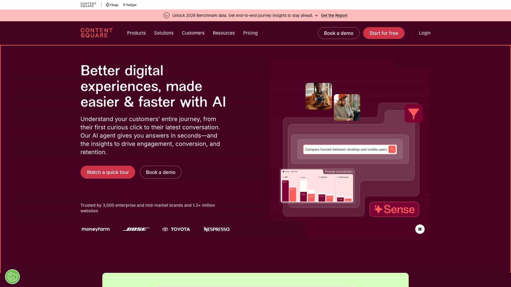 AI-powered digital experience analytics platform that helps businesses understand user behavior, optimize journeys, and boost conversions with insights from session replay, heatmaps, and voice of cust