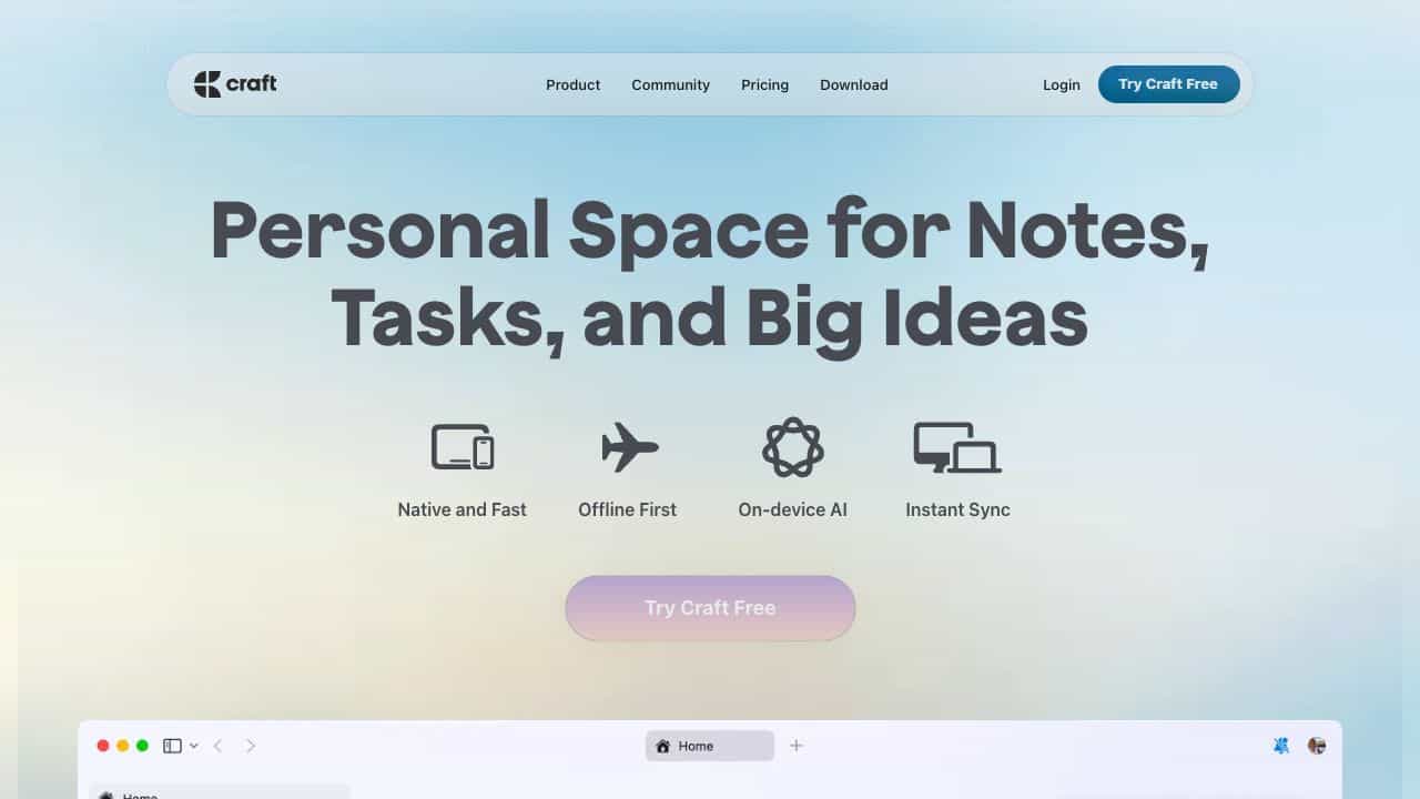 Craft is a versatile tool for managing notes, tasks, and big ideas, offering a seamless experience across multiple platforms.