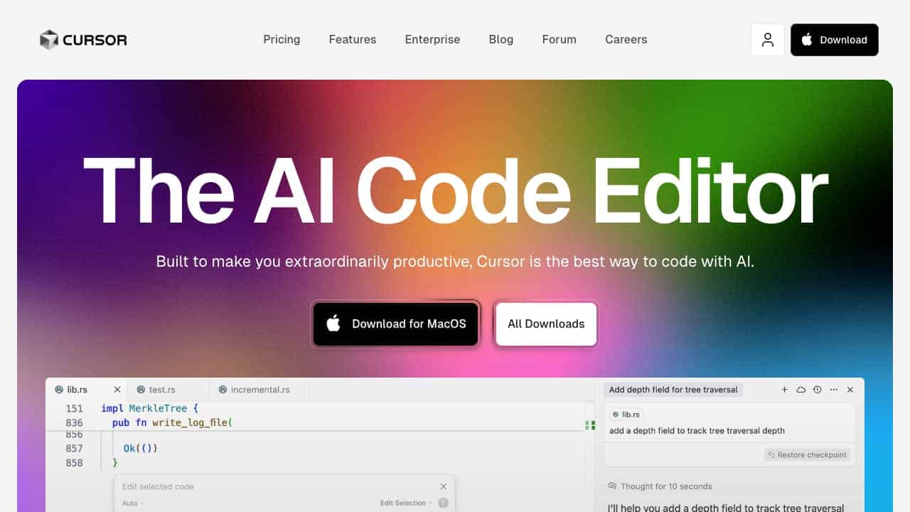 Download and install Cursor. Import your existing extensions, themes, and keybindings. Start coding and use AI features like tab completion, natural language editing, and codebase Q&A.