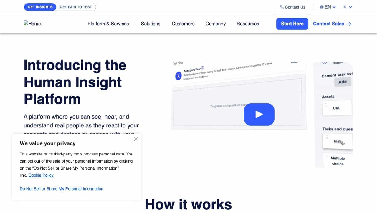 A human insight platform for gathering, analyzing, and scaling customer feedback through video-based testing and AI-powered analytics.