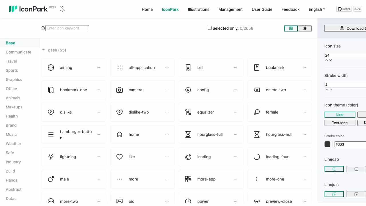 IconPark is a tool offering a vast collection of SVG icons that can be customized in size, stroke width, color themes, and more for use in design and development projects.