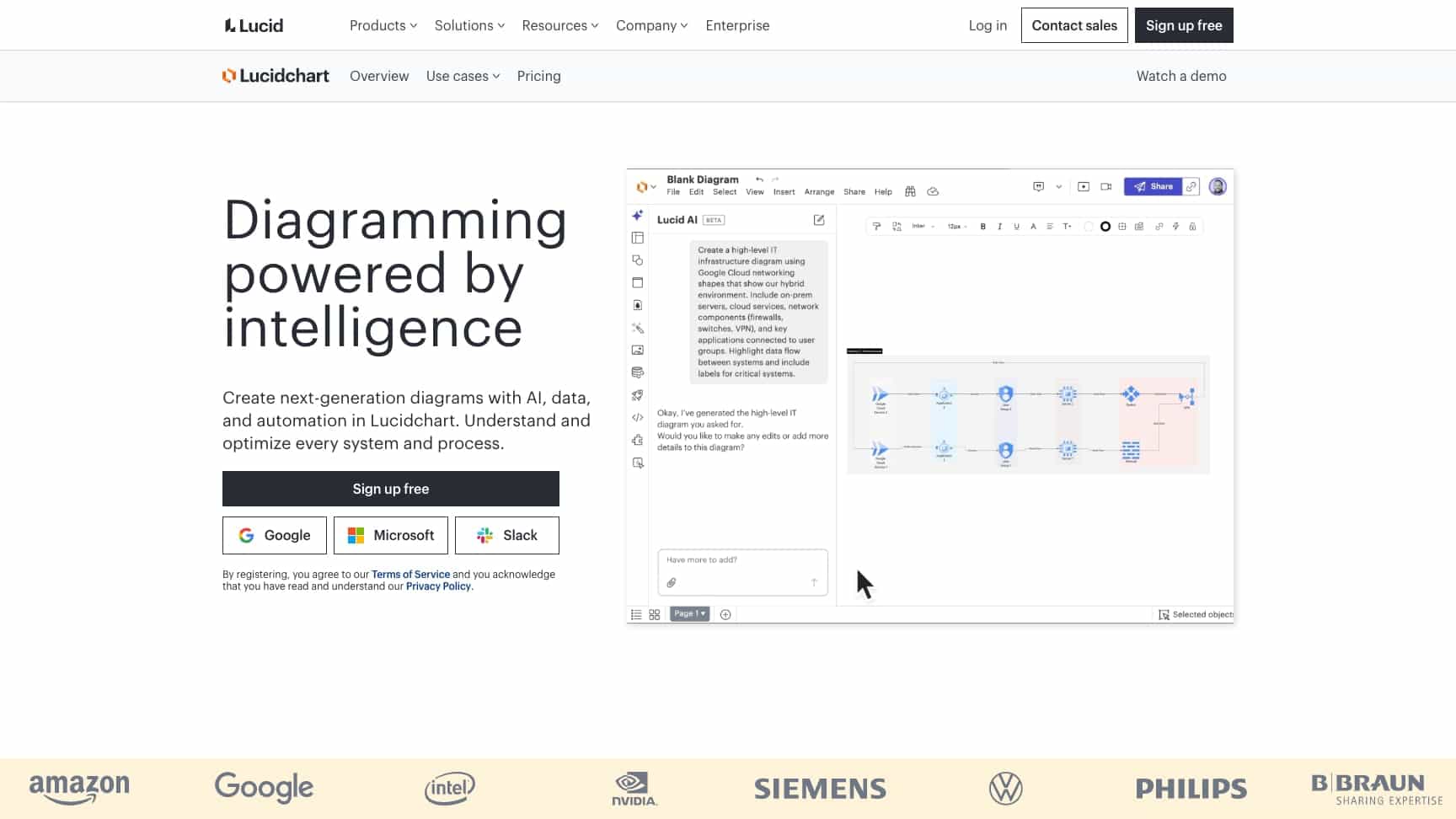 Lucidchart is a next-generation diagramming tool that uses AI, data, and automation to help users understand and optimize systems and processes through intelligent diagrams.