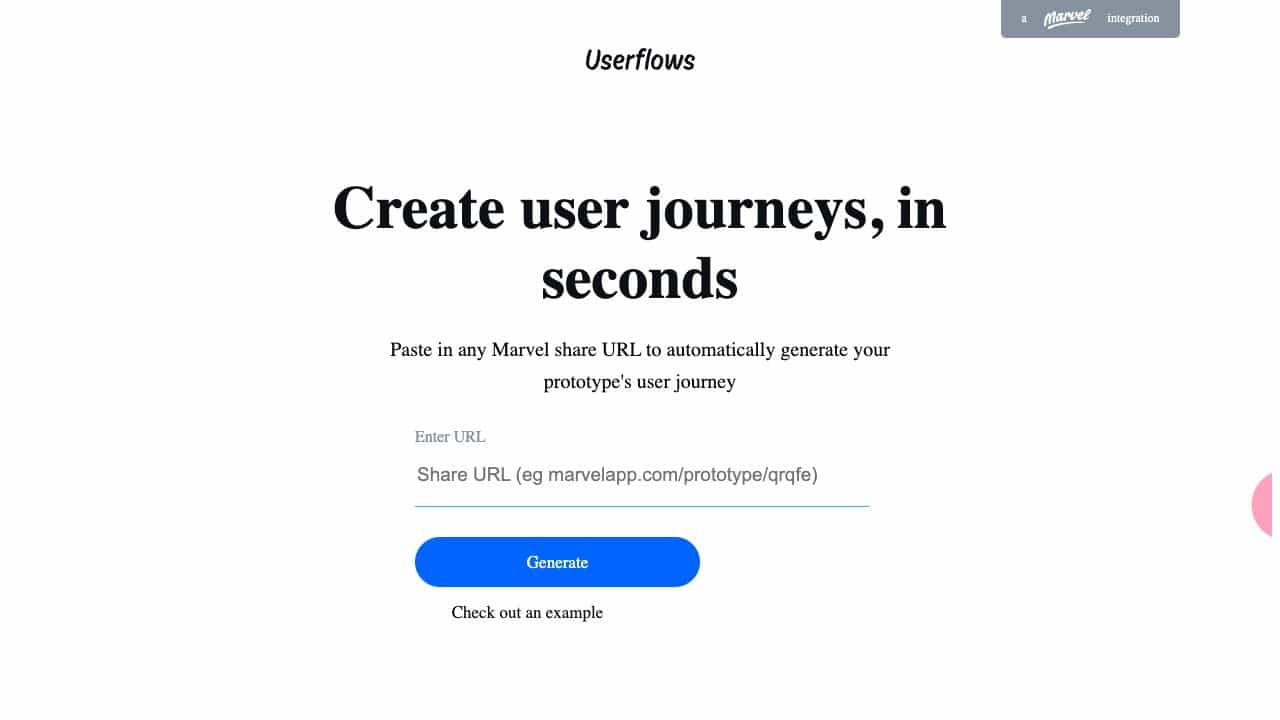 Paste a Marvel share URL to generate user flows, check site hierarchy, and present flows to colleagues or clients easily.