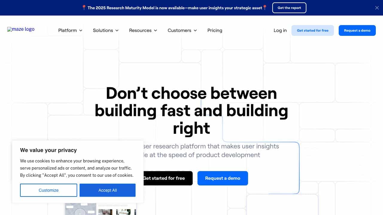 Maze is a continuous user research and experience testing platform designed for product teams to recruit participants, conduct tests, and analyze user feedback all in one place. It consolidates multiple research methods—such as prototype usability testing, surveys, card sorting, and interviews—into a unified workflow with automated reporting and AI-enhanced insights that help teams make faster, user-centric product decisions.