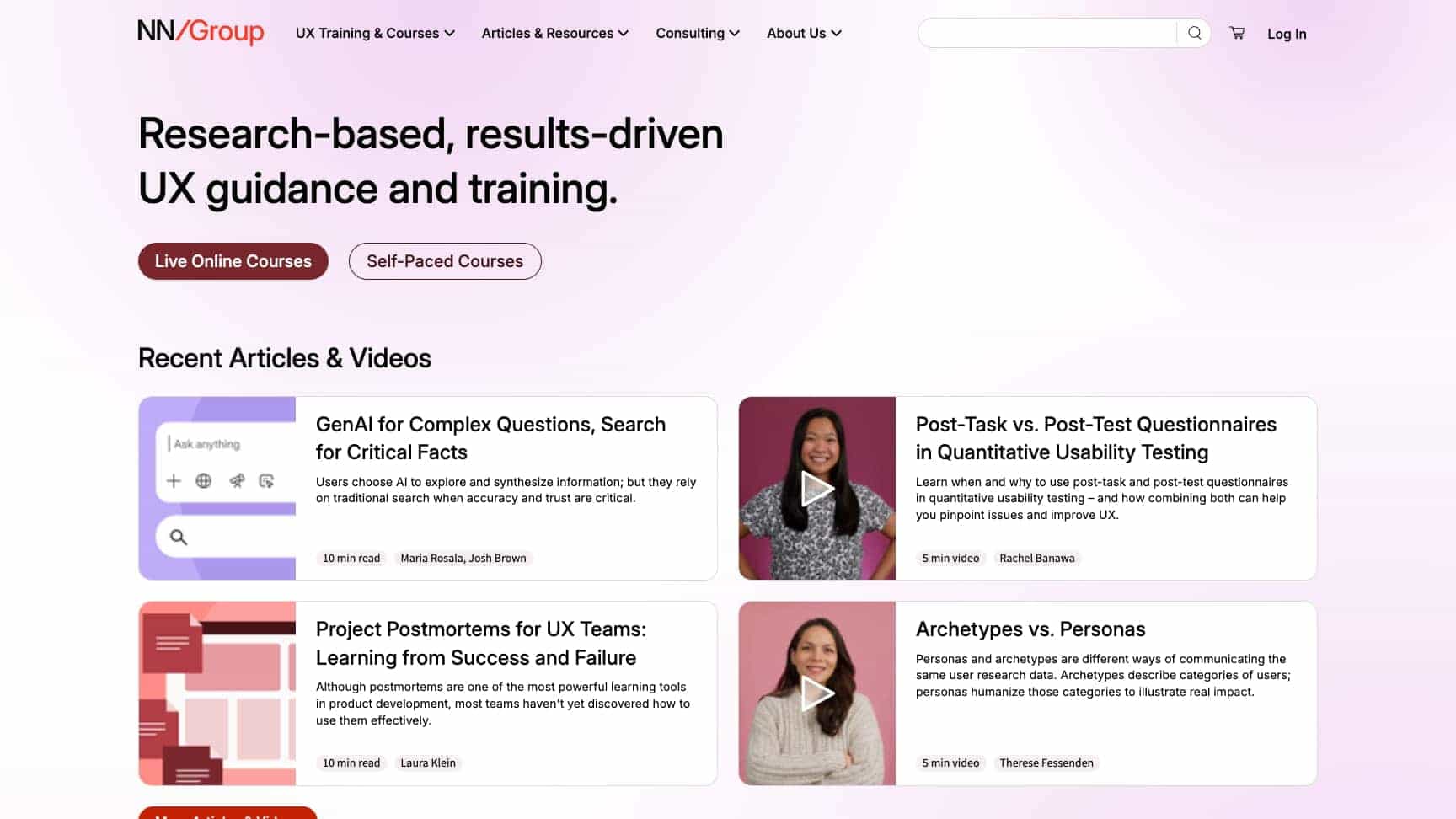 Access live online courses, self-paced training, articles, reports, and consulting services through their website to enhance UX skills and implement best practices.