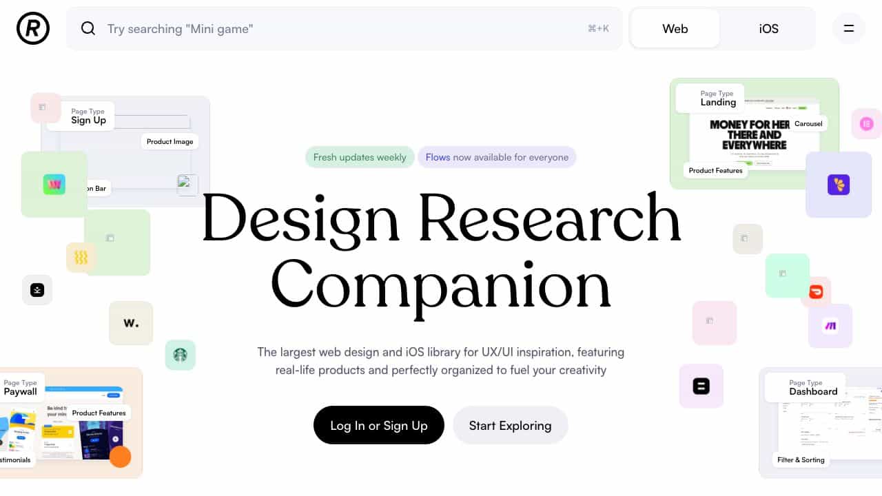 A comprehensive library of UI/UX design inspiration with real product interfaces and user flows for web and iOS, updated weekly.
