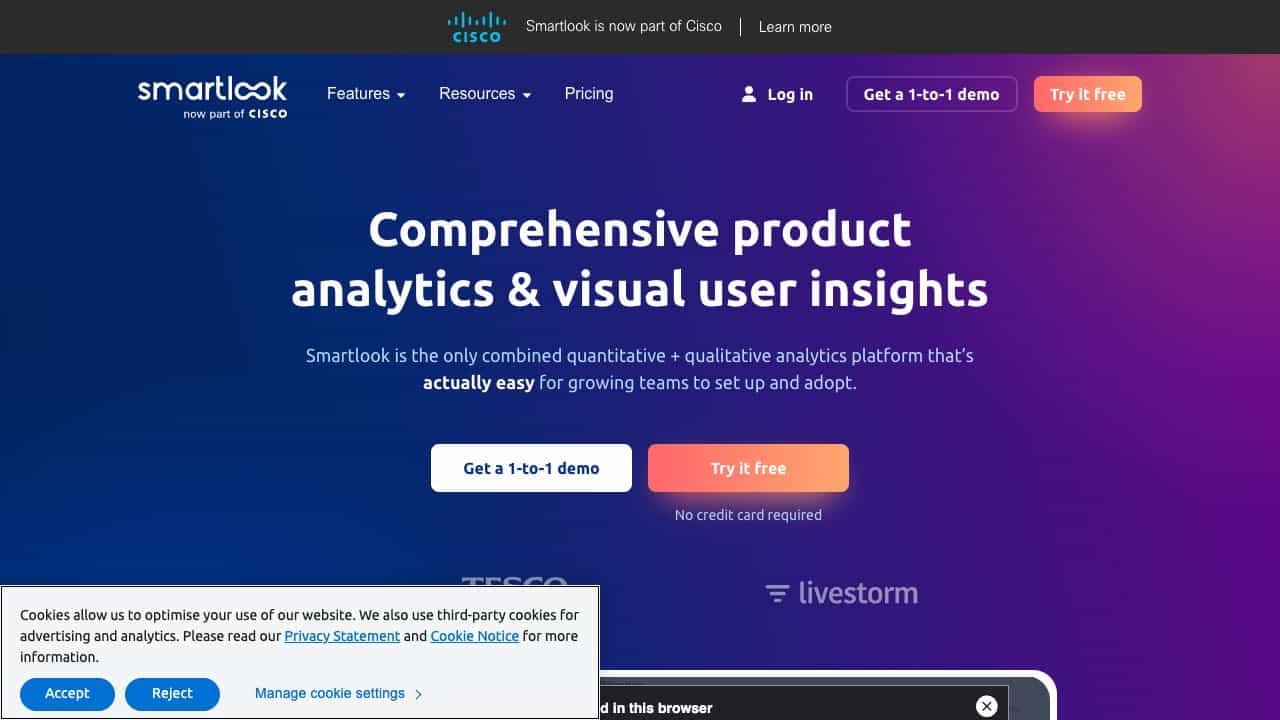Smartlook is a product analytics tool that provides session recordings, heatmaps, event tracking, funnels, crash reports, and behavior flows to help teams visualize and analyze user interactions for improving UX and conversion rates.