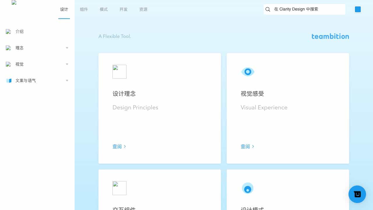 Clarity Design is a collaborative product UI design language and a React UI component library derived from the Teambition design system, primarily used for developing enterprise-level front-end and middle-office products.