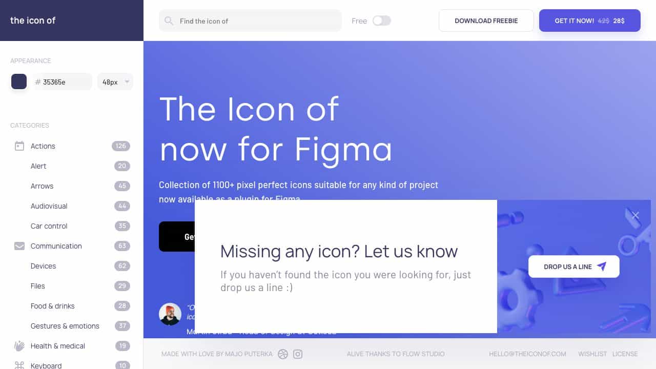 The Icon Of is a comprehensive icon set featuring 1100+ pixel-perfect icons, available as a plugin for Figma and in formats like .sketch, .fig, .svg, .png, and more, suitable for various design needs.