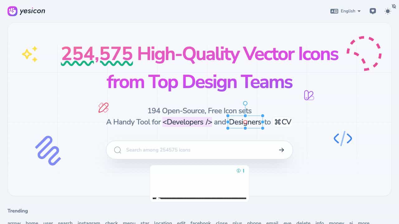 Yesicon is a comprehensive icon library offering a vast selection of vector icons from various open-source sets, designed to assist developers and designers in finding and using icons for projects.